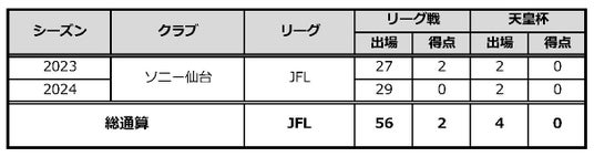 サッカー歴:ヴェルフェたかはら那須→栃木SC Jr.ユース→矢板中央高校→順天堂大→ソニー仙台