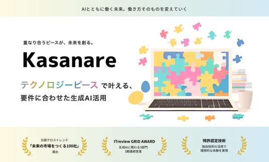 カサナレ株式会社は「いつもの仕事をもっと簡単に」をミッションに掲げ、業務効率化やDX推進を実現するための生成AIカスタマイズ型ソリューション「Kasanare(カサナレ)」を提供しています。