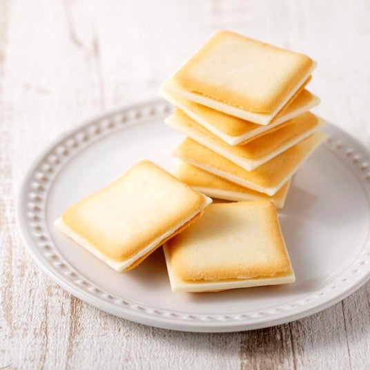 ホワイトチョコプレートをサンドしたラングドシャ。満足感のあるチョコの食感をお楽しみください。