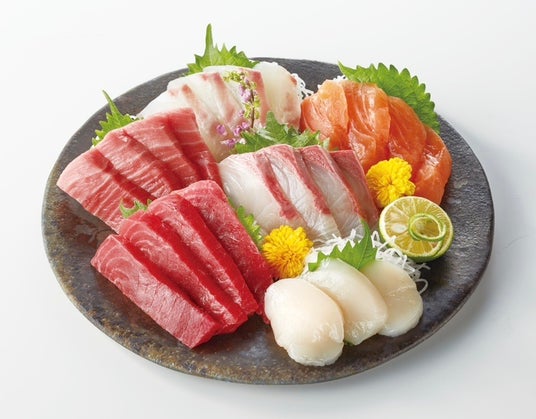 まぐろ中トロ、まぐろ赤身、真鯛、サーモン、勘八、帆立など。
