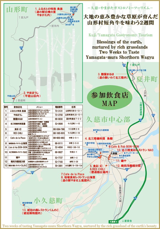 久慈市内の13の飲食店が「山形村短角牛」を活用したメニューを提供します。