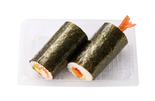 お子さまにも人気の具芯を採用した恵方巻です。サクサクのえびフライを、たっぷりのタルタルソースと一緒に巻きました。えびのしっぽまでおいしく食べられます。