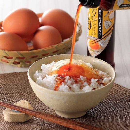 田村市産焙煎エゴマ油と福島県内製造の本醸造しょうゆが黄身の甘みとコクを際立たせました。ほんのり甘めで香ばしく、塩分控えめ。卵かけご飯が一段と美味しくなります。