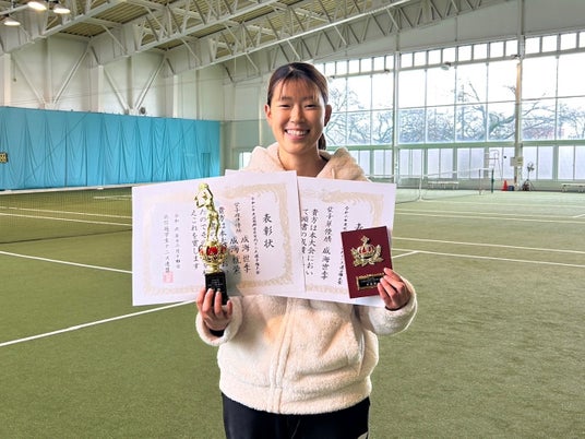 1回戦で第1シードを破り、準決勝では本学の成海就紫(健康スポーツ学科4年)との姉妹対決を制しました。決勝戦では本学の中村由良(救急救命学科1年)を下し、優勝を果たしました。