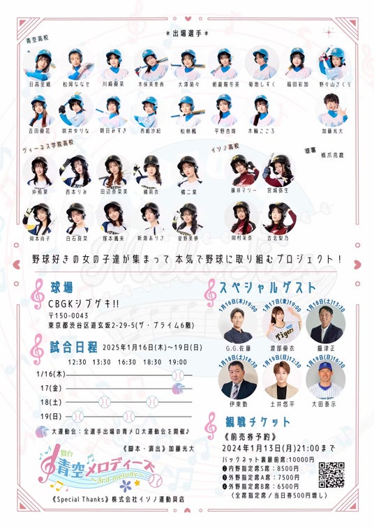 出演者には前作品に引き続き女子野球チーム「青空メロディーズ」のメンバーとオーディションによって選出された新メンバーの出演が決定。他には初演からライバル高校のエースとして出演を続ける『レースクイーン・オブ・ザ・イヤー』受賞の藤井マリー、オリックス・バファローズの宮城大弥選手の妹、宮城弥生。そしてヴィーネス高校チームには声優として活躍する西本りみ、元STUの沖 侑果らの豪華キャスト陣が作品を盛り上げる。