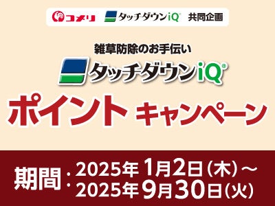 コメリ・タッチダウンiQ 共同企画「雑草防除のお手伝い タッチダウンiQポイントキャンペーン」条件・賞品:期間中、対象のタッチダウンiQ商品をお買い上げで、最大1,500ポイントプレゼント。