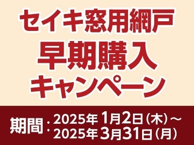 コメリ・セイキ 共同企画「セイキ窓用網戸 早期購入キャンペーン」条件:期間中、対象のセイキ窓用網戸を購入されたお客様にもれなく1枚ごとにポイントプレゼント。