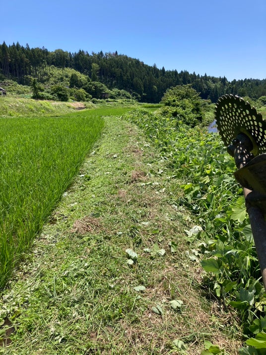 草刈り機で雑草を刈り取り