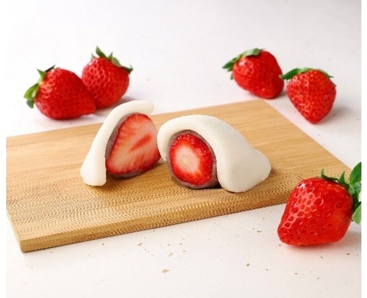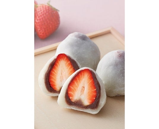 愛知県産の甘酸っぱい新鮮な大粒苺を、口溶けの良い小豆こし餡とともにふわふわの羽二重餅でそっと包んだ、苺、羽二重餅、こし餡、全てが主役の大福です。