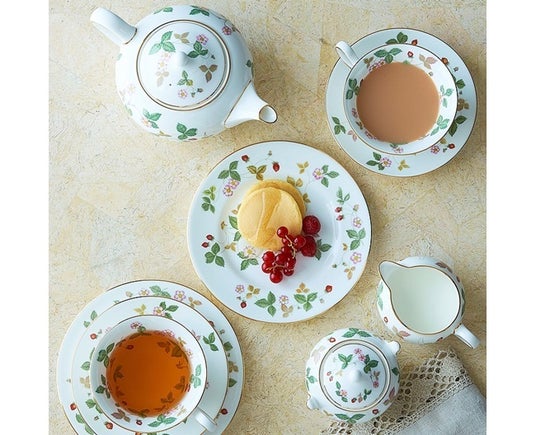 ワイルドストロベリーの図案は、自然をこよなく愛する英国人に好んで使われてきたもので、創設者ジョサイア・ウェッジウッドが最初に作ったパターンブック(18世紀後半)にもすでに見受けられる人気のデザインです。