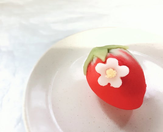 島根県安来産の「紅ほっぺ」のペーストを加えたいちご餡を使い仕上げた、可愛らしいいちごの形のねりきりです。
