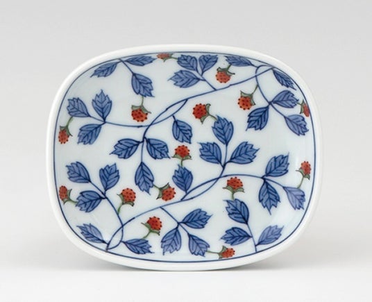自在に蔓を伸ばす野苺の木を唐草風にあしらった苺絵は、源右衛門窯で人気の文様です。お料理も和洋を問わずバターやジャムを乗せたり、シュガートレイなどにもぴったりです。インテリアや小物置きとしても色々なシーンで活躍します。
