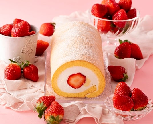 堂島ロールにいちごとカスタードをしのばせた、甘酸っぱいいちごとふんわりクリームを楽しめるロールケーキ。