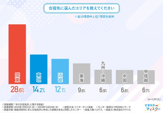 合宿先に選んだエリアはここ!その理由1位は『料金が安い合宿先があったから』