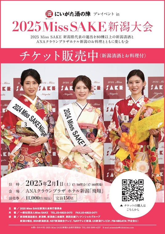 この度、2025 Miss SAKE新潟大会実行委員会(株式会社いちしま 〒957-0016 新潟県新発田市豊町 3 丁目 11 番 16号 代表:市島健二)は2025にいがた酒の陣のプレイベントとして「2025 Miss SAKE新潟大会」を実施いたします。