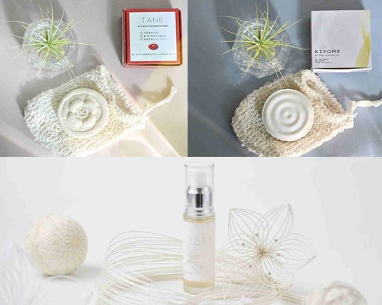 ・ KIYOME全身シャンプーバー(きよめ):山形県鶴岡市の熟成酒粕エキスを使用した「洗う美容液」。エイジングケア向け全身シャンプーバー、白檀などの天然和精油で香り