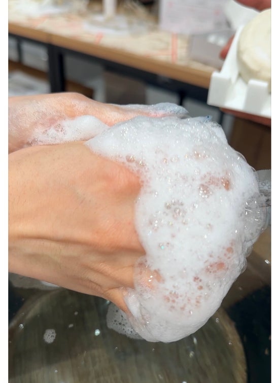 実際にその場で全身シャンプーバーを泡立てて、SAKIオイルセラムを塗ってお試しいただけます。
