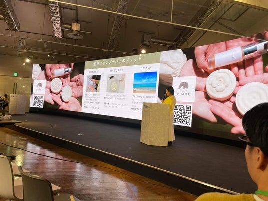 アトピーに悩む息子のために開発されたという製品の物語性と、椿の種や酒粕といった日本の伝統素材をアップサイクルし、天然由来成分で製造、プラスチックごみの削減や水資源の節約といったサステナブルな点が高く評価されました。