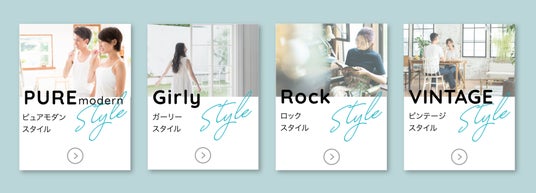 4パターンのライフスタイル「ピュアモダン」「ガーリー」「ロック」「ヴィンテージ」は、どのテーマも、それぞれ個性的でありながら主張しすぎない、絶妙な上品さを魅力としています。流行に敏感なお客様に納得いただけるように、それぞれ最新のアイテムを取り入れながら、長い時を経ても気持ちよく暮らしていただけるよう、いつまでも飽きのこないデザインを心がけました。