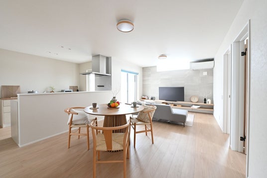 開放的なリビングは、家族が自然と集まり顔を合わせられる空間を実現。プライベート空間を確保しながら、家族全員が「ほっとできる」心地よさを提供します。平屋ながら広さと快適さを兼ね備えた設計が魅力です。