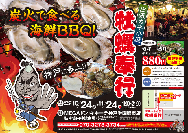 兵庫県垂水市に「出張カキ小屋」参上! 10月24日~ MEGAドン・キホーテ神戸学園都市店 駐車場特設会場で期間限定開催!《 宮城県産殻付き牡蠣が一盛り880円!! 》