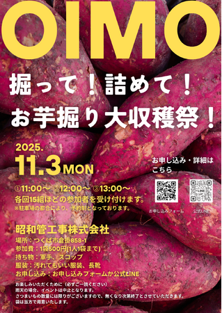 茨城県つくば市 お住まい・水まわりのプロ・昭和管工事株式会社が秋の地域密着型の交流イベント「OIMO 掘って!詰めて!お芋大収穫祭」を開催!