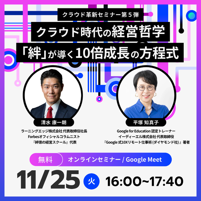 【11月25日開催】世界的成功哲学 × DX実践論が融合 清水康一朗氏 × 平塚知真子が語る