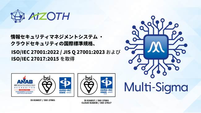 株式会社エイゾス、情報セキュリティマネジメントの国際規格ISO/IEC 27001およびクラウドサービスのセキュリティ管理に関するISO/IEC 27017を取得