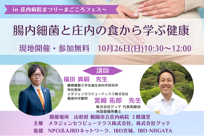 株式会社グッテ腸内細菌研究の最前線と、庄内の食文化や地中海食を学べるイベントを、腸内細菌研究に基づく医療・創薬を推進するメタジェンセラピューティクスと…