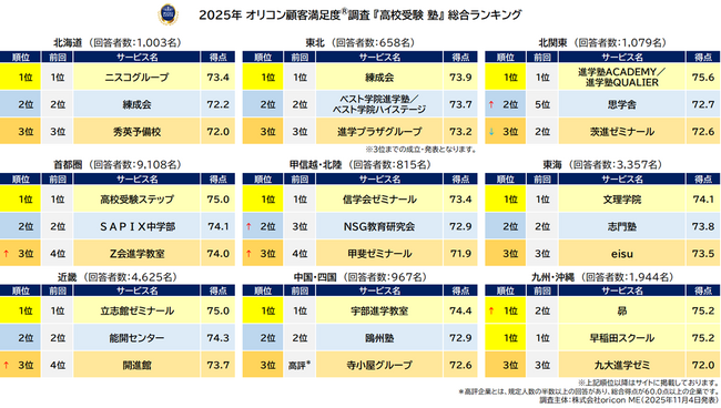 満足度の高い『高校受験 個別指導塾』ランキング『東海』【スクールIE】が5年連続8度目の総合1位『九州・沖縄』【明光義塾】が7年連続の総合1位に(オリコン顧客満足度(R)調査)
