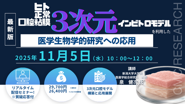 【ライブ配信/ZOOM】「ヒト正常口腔粘膜3次元インビトロモデルを利用した医学生物学的研究への応用」セミナー開催!11月5日(水)主催:(株)シーエムシー・リサーチ