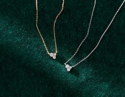 3石のラボグロウンダイヤモンドを逆三角形のような配置でセッティング。絶妙なバランスが、一粒タイプよりもすっきりとした印象を生み出します。他のネックレスと合わせれば華やぎのあるアクセントになります。
