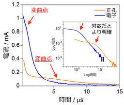 ◆非晶質膜は大気暴露後もほぼトラップフリーのアンバイポーラ電荷輸送を維持(12時間以上)。