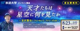 放送大学では、谷口 義明(放送大学特任教授)を講師として、オンライン講演会「 天才たちは星空に何を見たか ~宮沢賢治とフィンセント・ファン・ゴッホ~ 」を開催いたします。