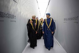 Sayyid Bilarab殿下はまた、万博VIPゲストブックに署名し、日本の関係者との間で記念品を交換し、日本パビリオンを訪問しました。同パビリオンでは、Noriyuki Kuroda館長が出迎え、「大地、農場、工場」と題された各ゾーンについて説明を受けました。万博でのオマーン建国記念日の祝賀行事が訪問の背景となり、両国の国歌斉唱と王立騎兵楽団による演奏が行われました。