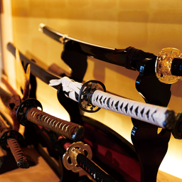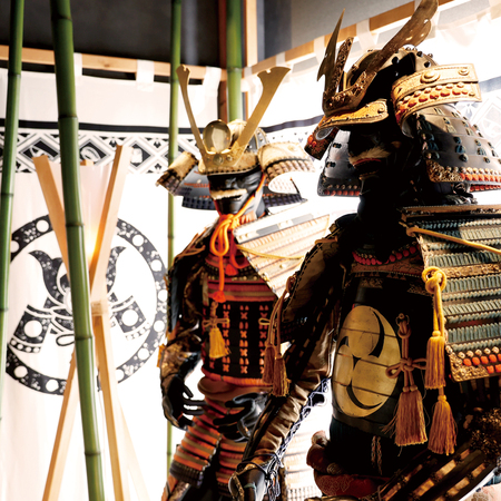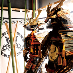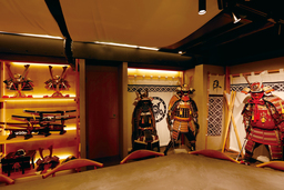 ◆ 日本刀や鎧兜、旗が並ぶ、まるで戦国時代のような非日常の空間