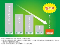 ③他の暖房器具に比べて省エネ。温度センサーで無駄な温めすぎを防いで節電にも貢献。1時間の電気代はわずか約2.8円(※2)