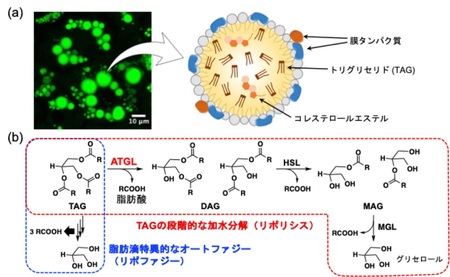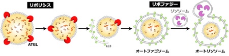 ・脂肪滴選択的なオートファジー(リポファジー(注3))は、加水分解が進行した脂肪滴に対して起こることを明らかにした。