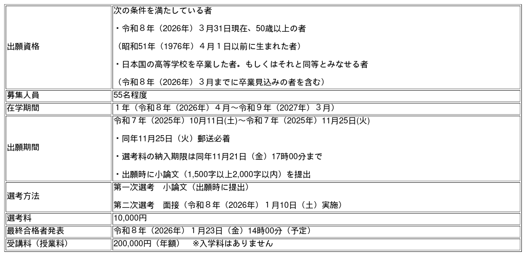 東京都立大学は、本学が運営する生涯学べる100歳大学「東京都立大学プレミアム・カレッジ」について、令和8年度(2026年度)入学(本科)に関する募集要項等を公表し、以下のとおり出願の受付を開始します。