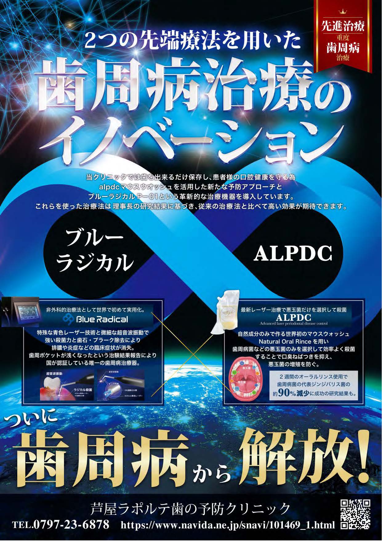 芦屋ラポルテ歯の予防クリニックで対象メニュー(ブルーラジカルP-01+ALPDC整菌療法 等)に充当