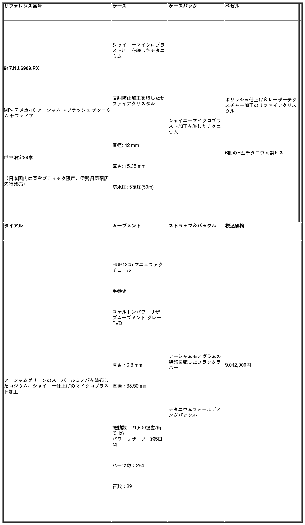 99本限定の「MP-17 メカ-10 アーシャム スプラッシュ チタニウム サファイア」は、国内のウブロブティックにて発売予定です。