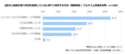収納方法は、「コンパクトにまとまる収納ケースや収納袋」43.5%、「圧縮袋」21.0%などを使用して省スペースで収納している人が多いようですが、「そのまま収納している」人も28.2%にのぼります。