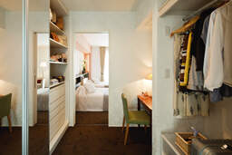 ウォークインクローゼットを収納力だけでなく、おしゃれを楽しむ、便利で楽しいワクワクする空間に仕上げてみませんか。例えば、全身チェックに便利なミラー付の収納扉やドレッサーなどを組み込めば、ドレスアップ、メイクアップがまとめてできる空間に。