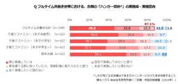 最初に、日々の生活時間について聞いたところ、フルタイム共働き子育てファミリーの約3~4割が「平日・休日ともに毎日忙しくて一息つく暇がない」ことがわかりました。なかでも末子が幼いほどその割合は高く、末子が未就学の世帯では37.1%にのぼりました。