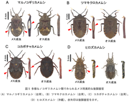 ・ ノコギリカメムシのメス成虫の後脚にある特徴的な構造は“鼓膜器官”ではなく、特定の微生物を培養する“共生器官”であることを発見