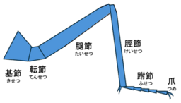 昆虫類の脚は基部より基節、転節、腿節、脛節、跗節からなる(図参照)。