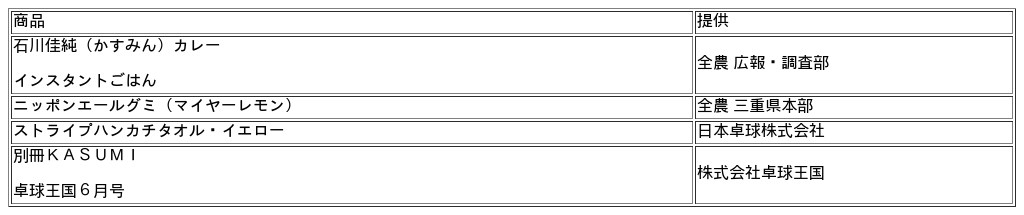 JA全農は、10月11日(土)に三重県鈴鹿市・AGF鈴鹿体育館にて、全農所属で元卓球日本代表の石川佳純さんによる卓球教室「全農presents石川佳純47都道府県サンクスツアーin三重」を開催しました。