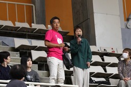また、観客からの質問コーナーも実施し、「プレッシャーを感じないようにするためにはどうしたらよいか」という質問に、石川さんは「たくさん練習をして日頃やっていることを信じることが重要」と答えました。質問をした観覧者は石川さんのサーブを受ける「1球チャレンジ」に参加しました。また、参加選手とのチャレンジマッチも実施され、緊張感のあるラリーに歓声が上がりました。
