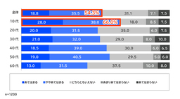は、年代別では10代(71.5%)が最も高く、とりわけ10代女性(81.0%)が突出している。
