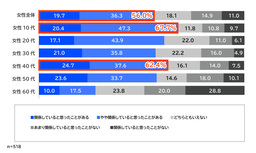 ※n数は、設問「あなたは『性ホルモンの変化による心身の不調』によって『仕事のパフォーマンスが落ちた』等支障を感じたことはありますか。(フルタイム、パートタイム、アルバイト等の働き方は不問です)」に対して「感じたことがある」「やや感じたことがある」と回答した女性。